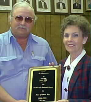 Doug Cox receives plaque from Pecos Mayor Dot Stafford on his retirement