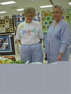 Patsy Bowles and Barbara Creager view garden produce displayed at fair