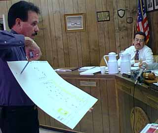 Armando Gil shows zoo map to Pecos City Council
