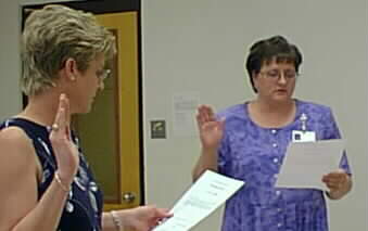 Holly Key takes the oath of office for Hospital Board, administered by Nadine Smith