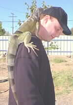 Larry Maleson with pet iguana