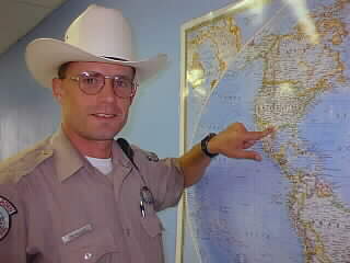Game Warden Jim Allen points to the desert area where black bear have been seen in increasing numbers