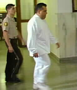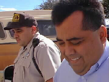 Bail bondsman Joey Herrera Jr. with Deputy Joseph Ortiz, headed for court