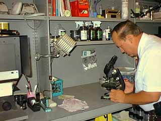 Kelly Davis uses microscope in new police lab
