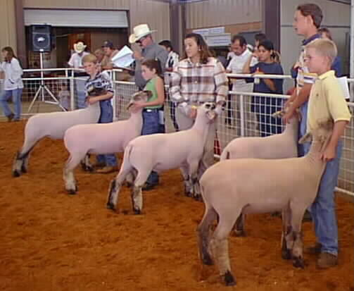 Reeves County 4-H'ers Tina Gonzales, Jack Stickels and Trey Perkins (three at right) with livestock show director Ricky Exum