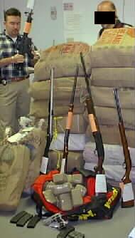 Ernest Lazcano and Paul Deishler, narcotics investigators, check out weapons and $1 million marijuana haul
