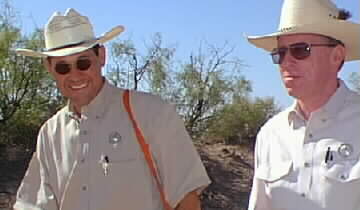 Texas Rangers Jerry Villalobos, left, and David Duncan arrive at dig site.
