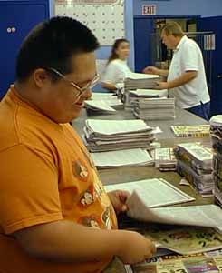 Raymond Rayos inserts newspaper sections