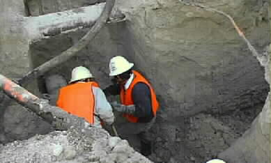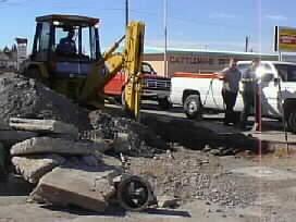 Holloman Construction Co. workers dig out leaking sewer pipe